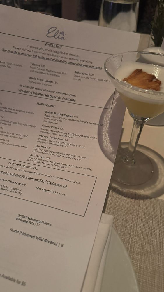 Guest reviews highlight the beautiful decor, attentive staff, and fantastic food. Dishes like the skirt steak, lamb, and seafood specials receive rave reviews for their taste and quality. The patio seating is adorned with flowers and chandeliers, creating a charming atmosphere for guests to enjoy their meals. Don't miss out on the seafood specials, like the squid ink pasta and fresh scallops, for a truly memorable dining experience at Elia Mediterranean Restaurant.